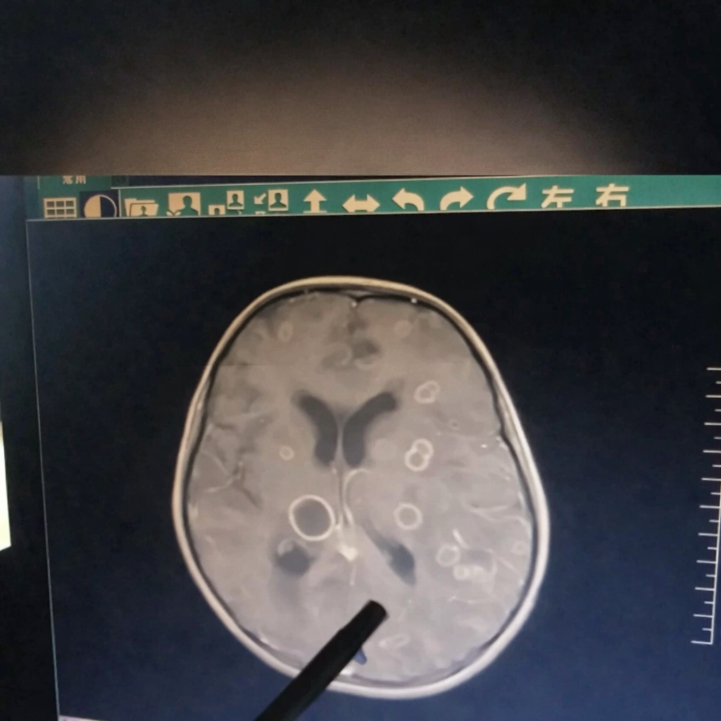 Kết quả kiểm tra khiến các bác sĩ không khỏi bàng hoàng: Trong não của đứa trẻ xuất hiện hơn chục ổ tổn thương lớn nhỏ, giống như bị “gặm nhấm” từng mảng.