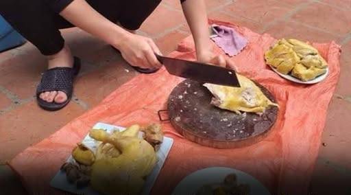 Hạnh thoáng sững người, linh cảm điều gì đó không ổn. Cô bước tới, cúi xuống mở gói vải ra. Một tiếng thở dốc bật lên. Bên trong là bộ đồ ngủ của chồng cô — chiếc áo thun cũ và quần đùi kẻ sọc mà Quân vẫn thường mặc ở nhà. Hạnh nhận ra rõ từng đường chỉ sờn, cả mùi nước xả vải quen thuộc.