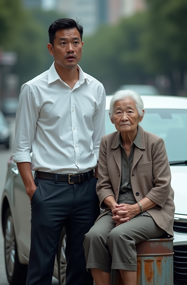 Một người phụ nữ tóc đã bạc, dáng vẻ gầy gò, khoác trên mình bộ quần áo cũ kỹ đang co ro trước một cửa tiệm ven đường. Trông bà có vẻ như đang tìm chỗ trú mưa, hoặc có lẽ… đang tìm kiếm thứ gì đó từ những chiếc thùng rác gần đó. Một cảm giác quen thuộc xộc đến khiến tim Minh đập mạnh. Anh nheo mắt quan sát kỹ hơn. Càng nhìn, anh càng chắc chắn đó chính là cô Lan – cô giáo chủ nhiệm năm xưa của anh.