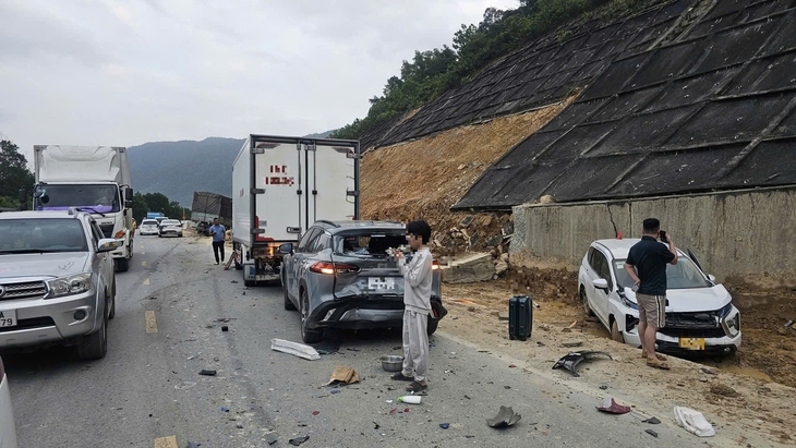 Vụ tai nạn không có thương vong nhưng xe tải và các ô tô hư hỏng. Đơn vị quản lý đang phối hợp để phương tiện lưu thông chậm một chiều.