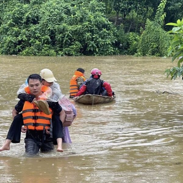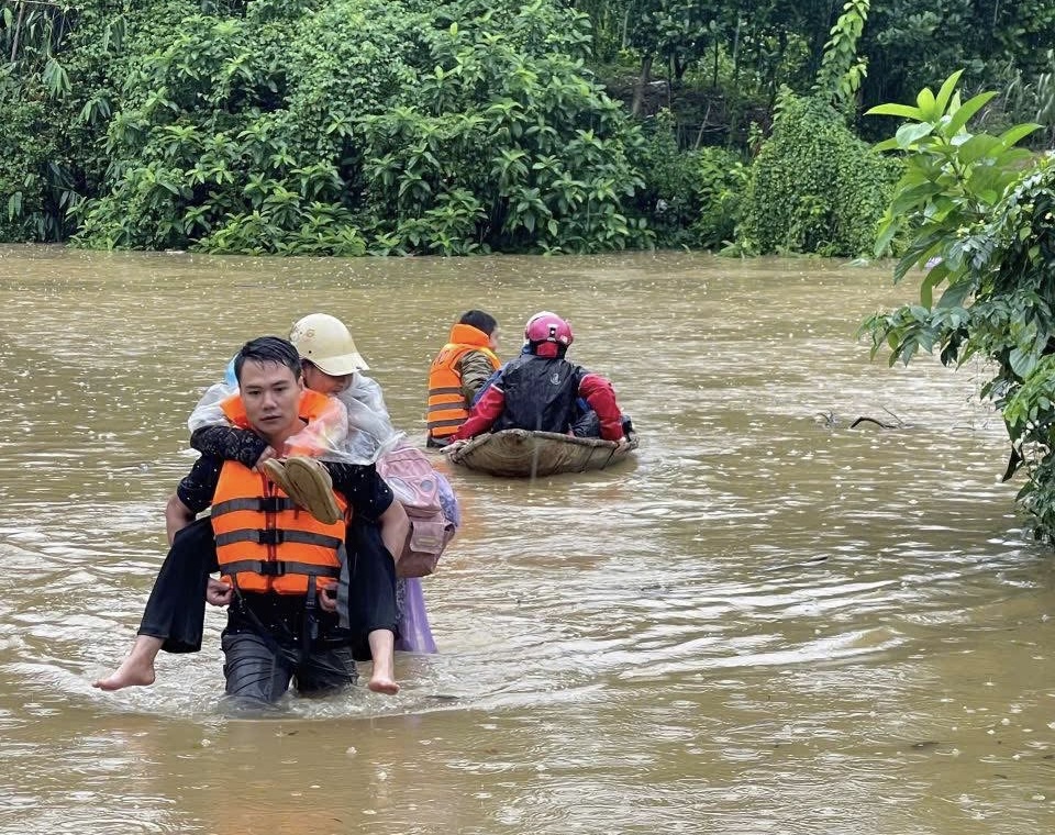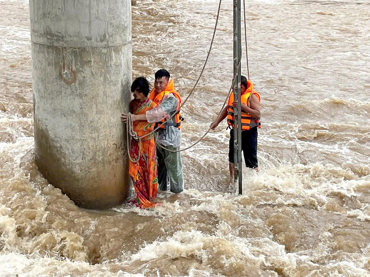 Giải cứu nạn nhân bị mắc kẹt giữa dòng nước lũ ở Tuyên Quang