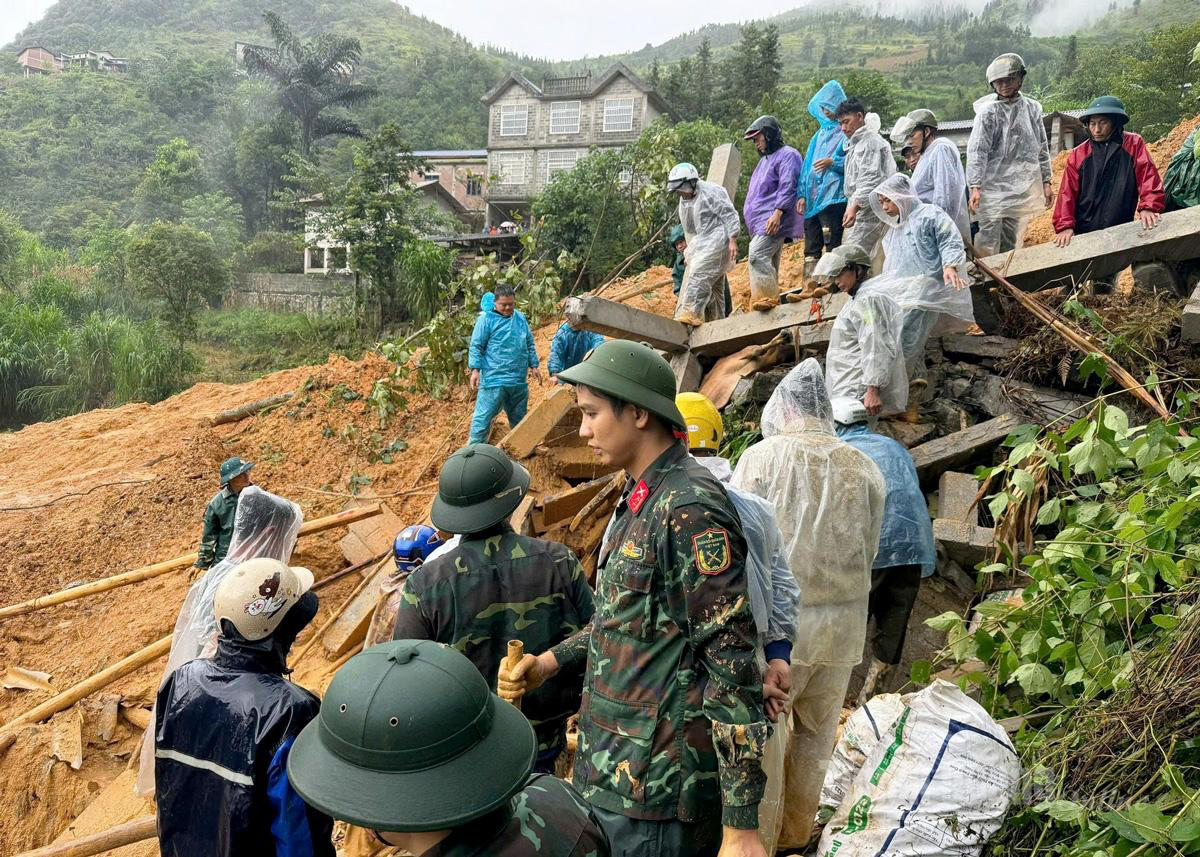 Lực lượng chức năng tỉnh Tuyên Quang đang nỗ lực tìm kiếm các nạn nhân bị vùi lấp trong vụ sạt lở 6 nhà dân.